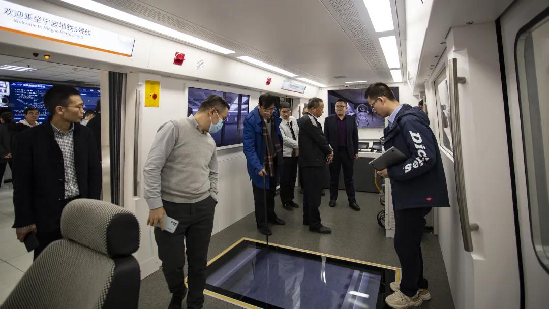 在中央研究院院长周在福带领下,各与会专家现场参观了众合科技智慧城轨先进实验室、一苇数智·智慧交通时空大数据平台、众合科技智能运营中心等。